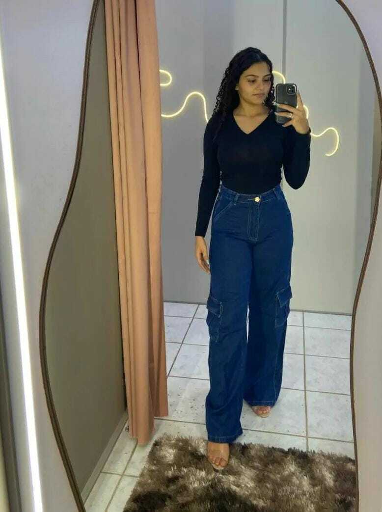 A queridinha do momento chegou pra ficar! Nossa calça cargo jeans une o estilo urbano com o conforto que a gente ama. Com bolsos utilitários, modelagem mais soltinha e aquele jeans macio com caimento perfeito, ela traz uma vibe despojada sem perder o charme.